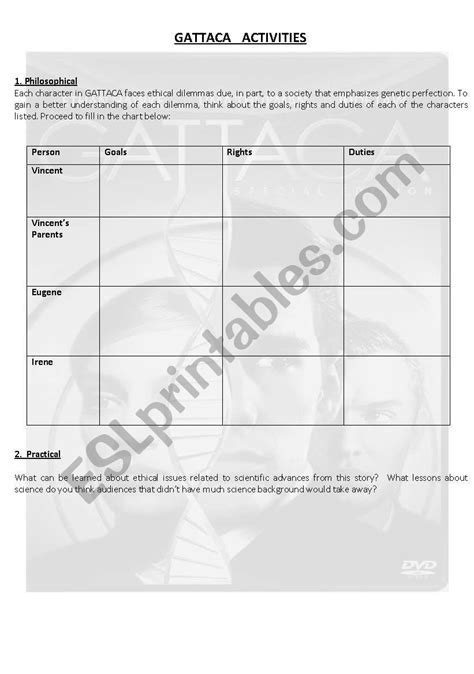 Web A Collection Of Downloadable Worksheets, Exercises And Activities To Teach Gattaca, Shared By English Language Teachers.