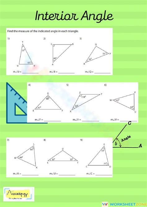 1) 4) 7) 3) 6) 9) 2) 5) 8) t u v 63! Web free worksheet(pdf) and answer key on the interior angles of a triangle. This worksheet explains how to find the measure of interior and.